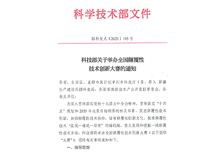 • 關于舉辦2022年全國顛覆性技術創新大賽公開海選領域賽的通知